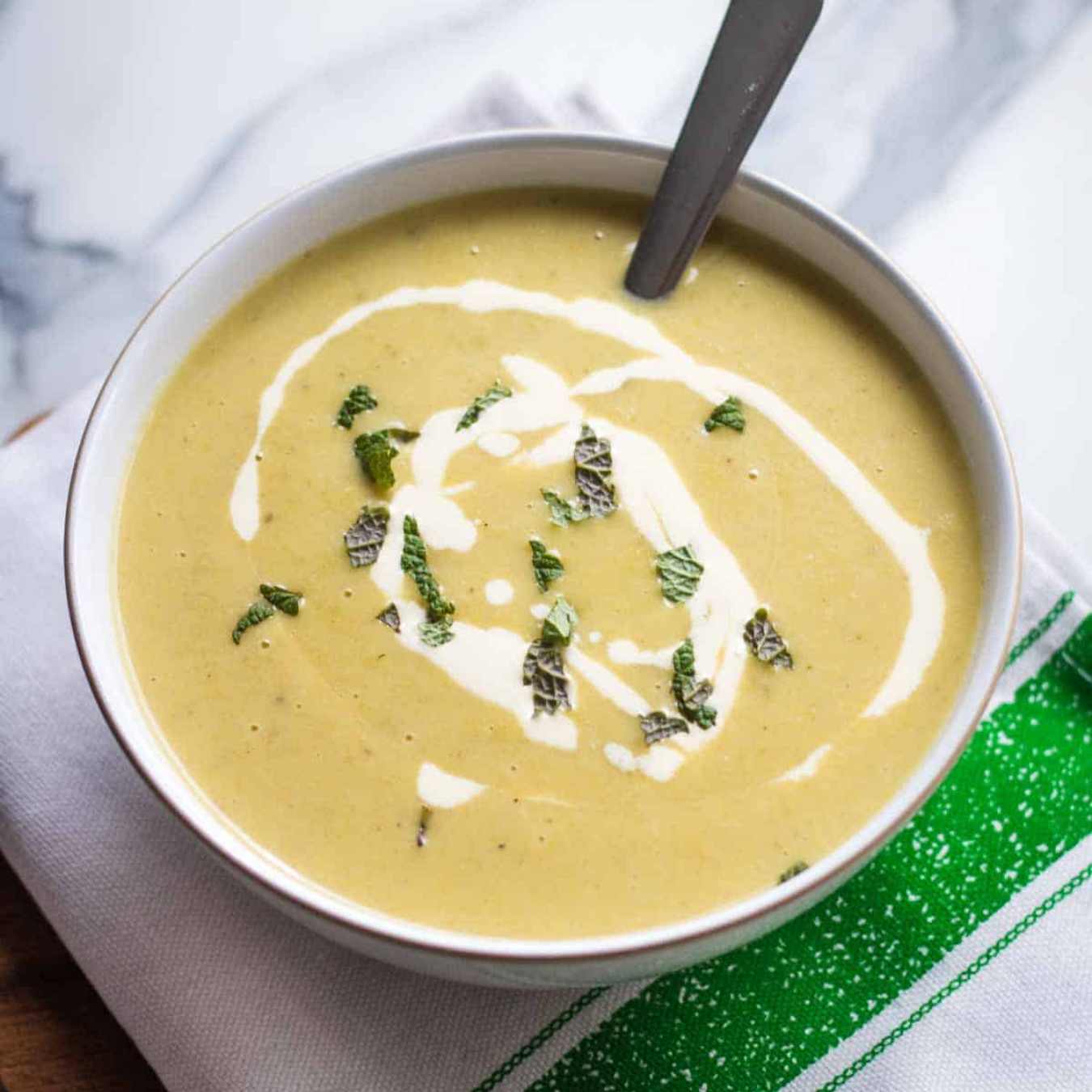 Sử dụng máy xay cầm tay, thêm kem dừa, xay đều rồi chia vào bát và thưởng thức