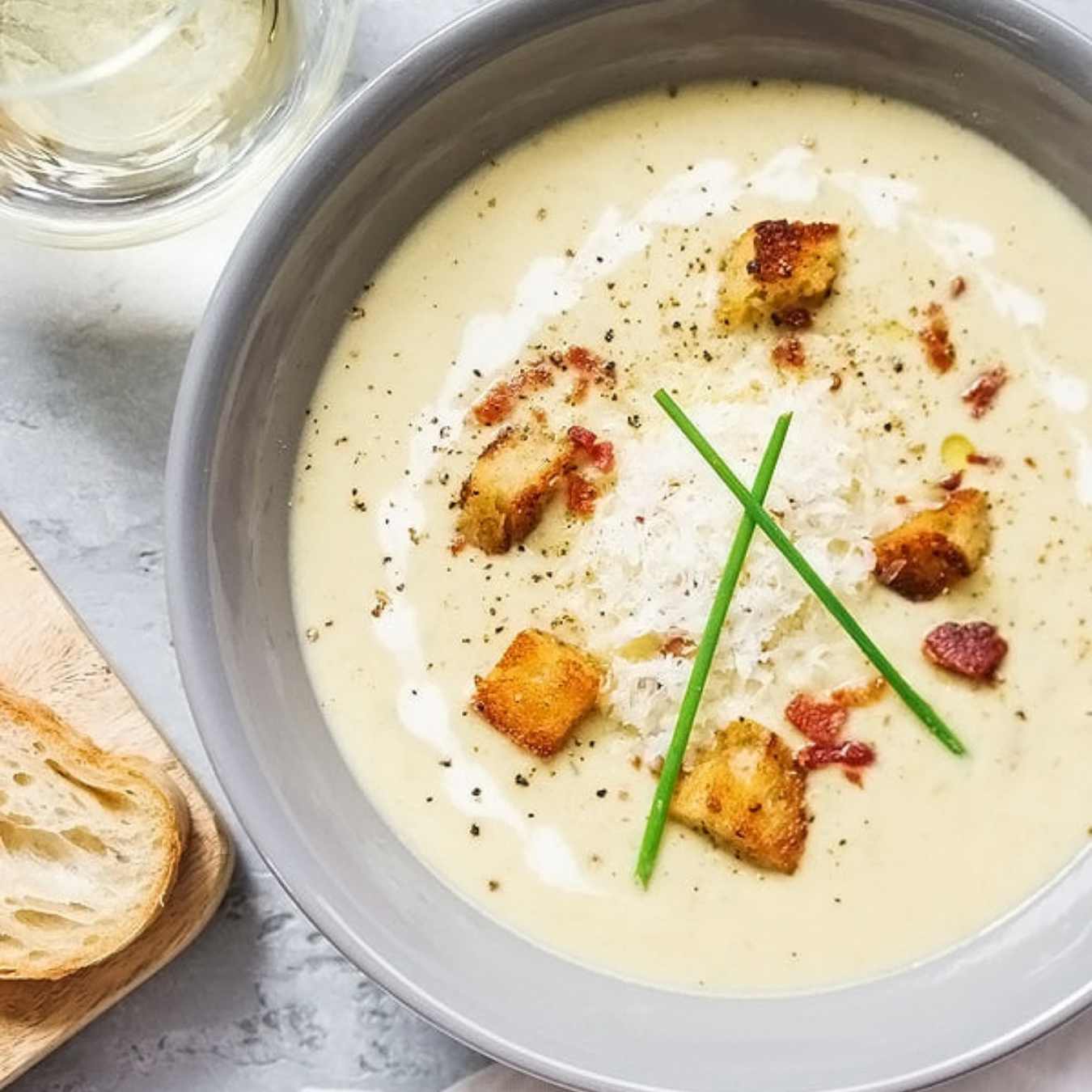 Thêm muối và hạt tiêu, khuấy đều và trộn súp bằng máy xay ngâm