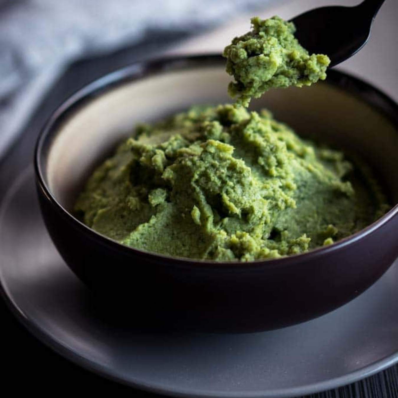 Chắt nước, chuyển sang bát và nghiền bông cải xanh bằng máy nghiền khoai tây