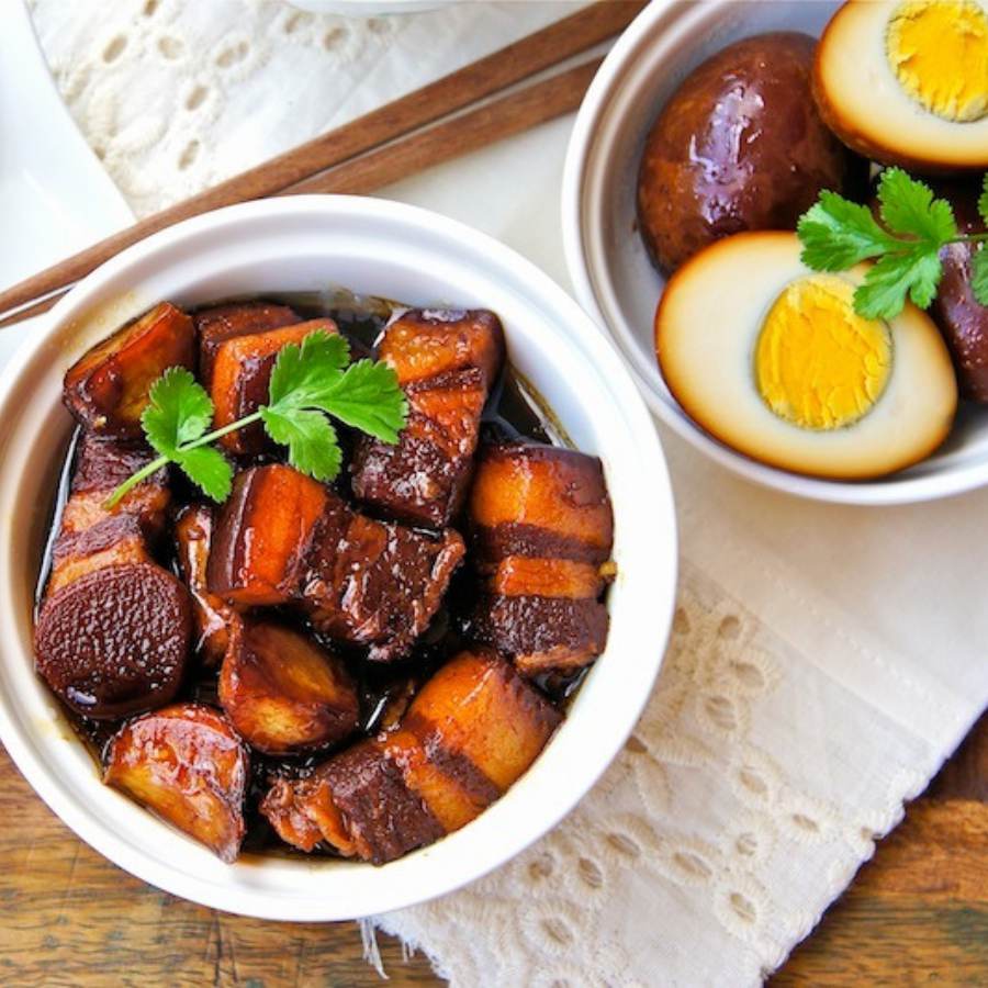 Thịt kho có màu hơi vàng, mùi thơm, vị ngọt, mặn, thịt nhừ, nguyên miếng, còn một ít sốt sánh. Chúc bạn ngon miệng