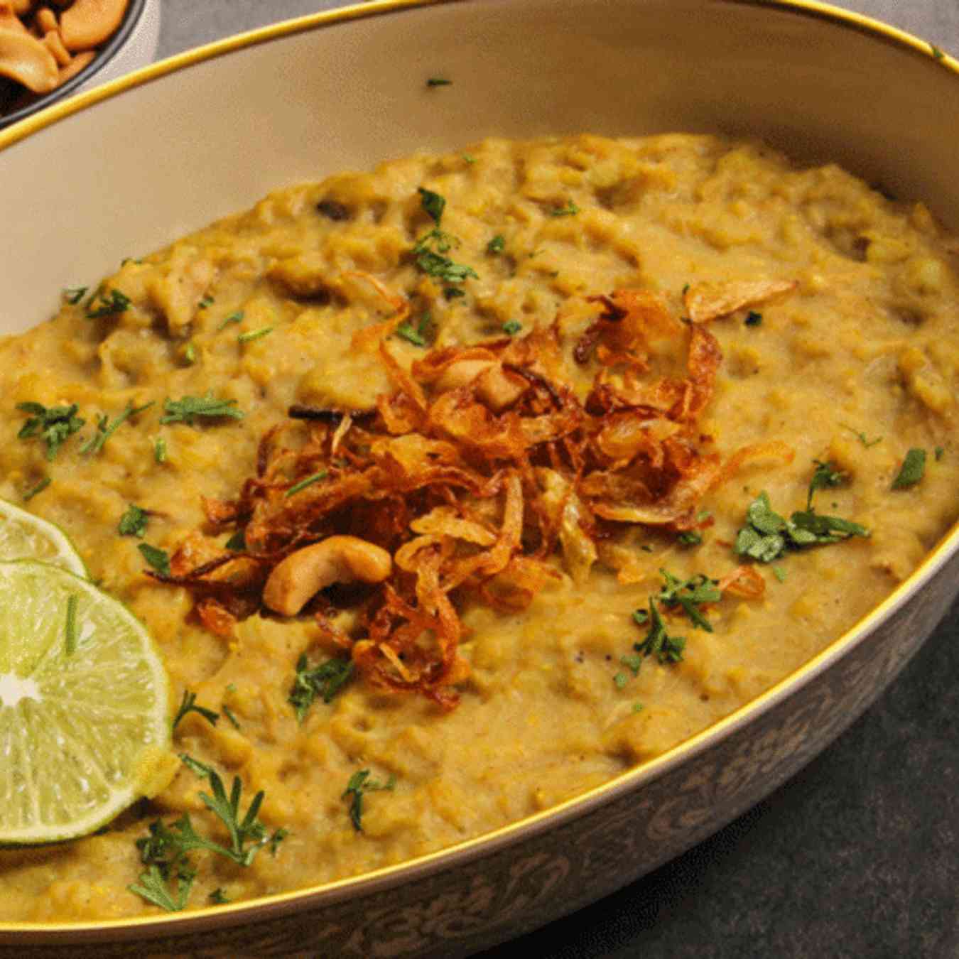 Cho thịt gà, lúa mì, đậu lăng Chana dal, nước, gừng, tỏi, ớt Cayenne, nghệ, muối, thì là, ngò và 1 tsp Garam masala vào nồi