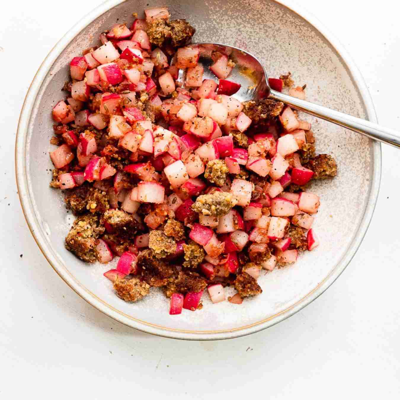 Cho củ cải, dưa cải (hoặc thì là Ba Tư Caraway) vào chảo. Nêm muối và tiêu, nấu khoảng 5-10 phút cho đến khi củ cải hơi mềm