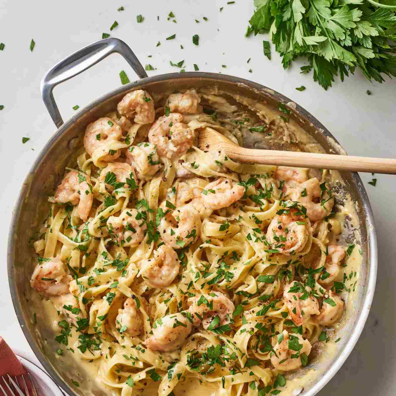 Thêm tôm vào chảo, đảo đều và nấu trong 7 phút