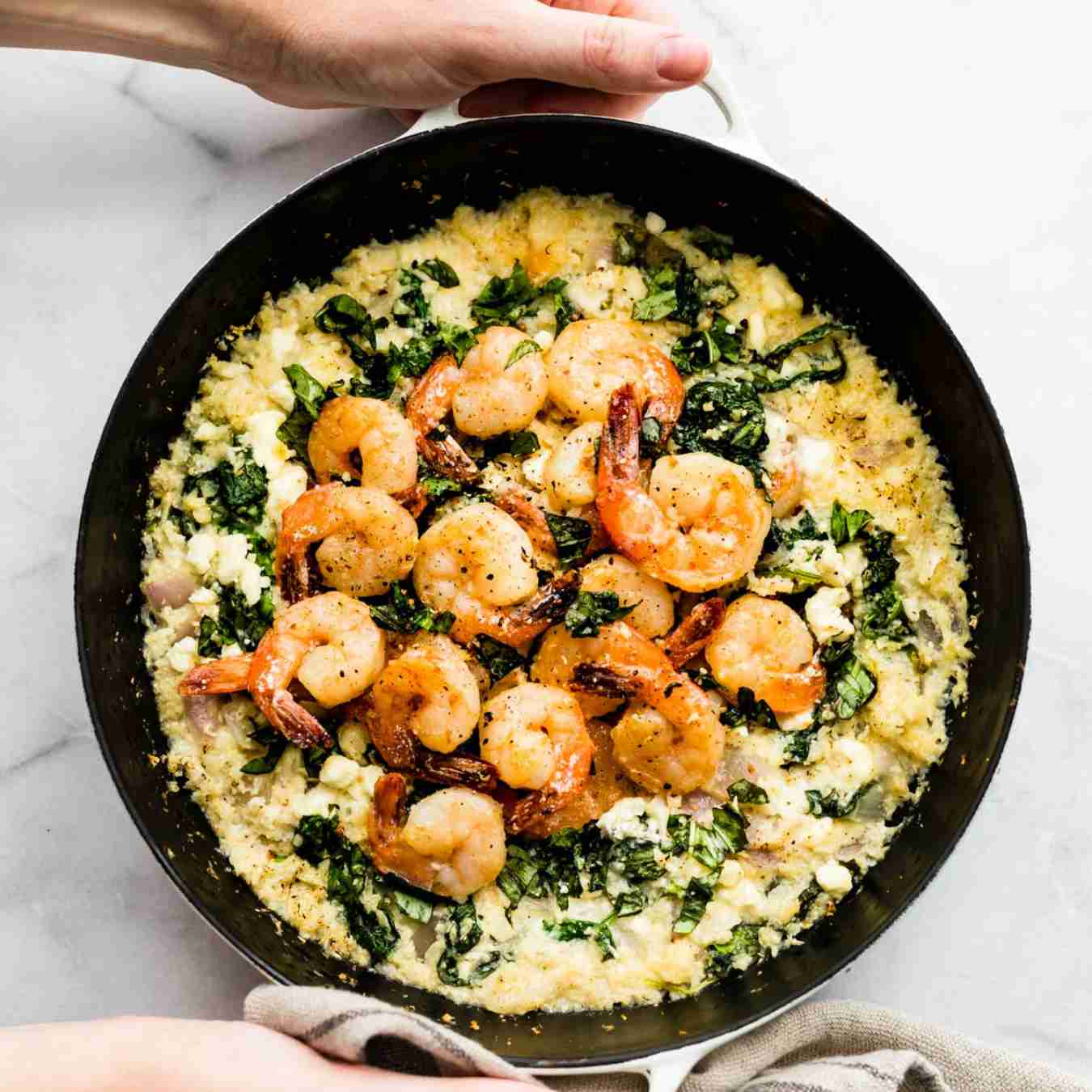 Cho nước cốt bò, muối, tiêu và tôm trở lại chảo. Khuấy đều, nấu cho đến khi mọi thứ đặc lại, tắt bếp và giữ ấm