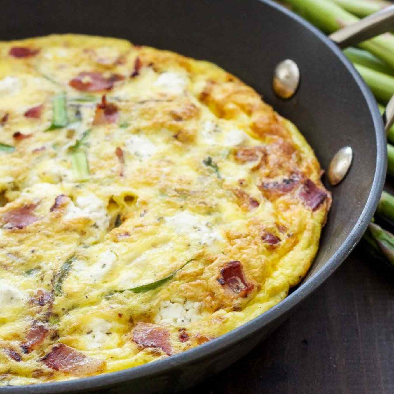 Đun nóng chảo trên lửa vừa, cho thịt heo xông khói vào, đảo đều và rán trong 5 phút