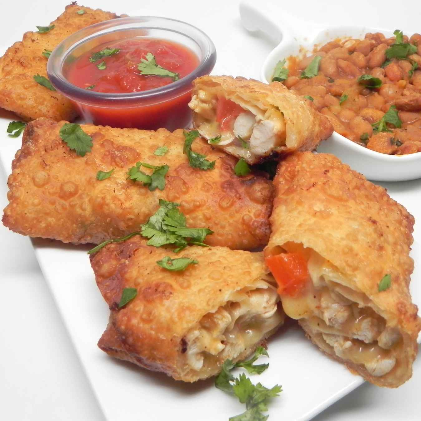 Đặt trứng lên bề mặt bếp, chia đều hỗn hợp gà lên trên, cuộn và dán các mép lại
