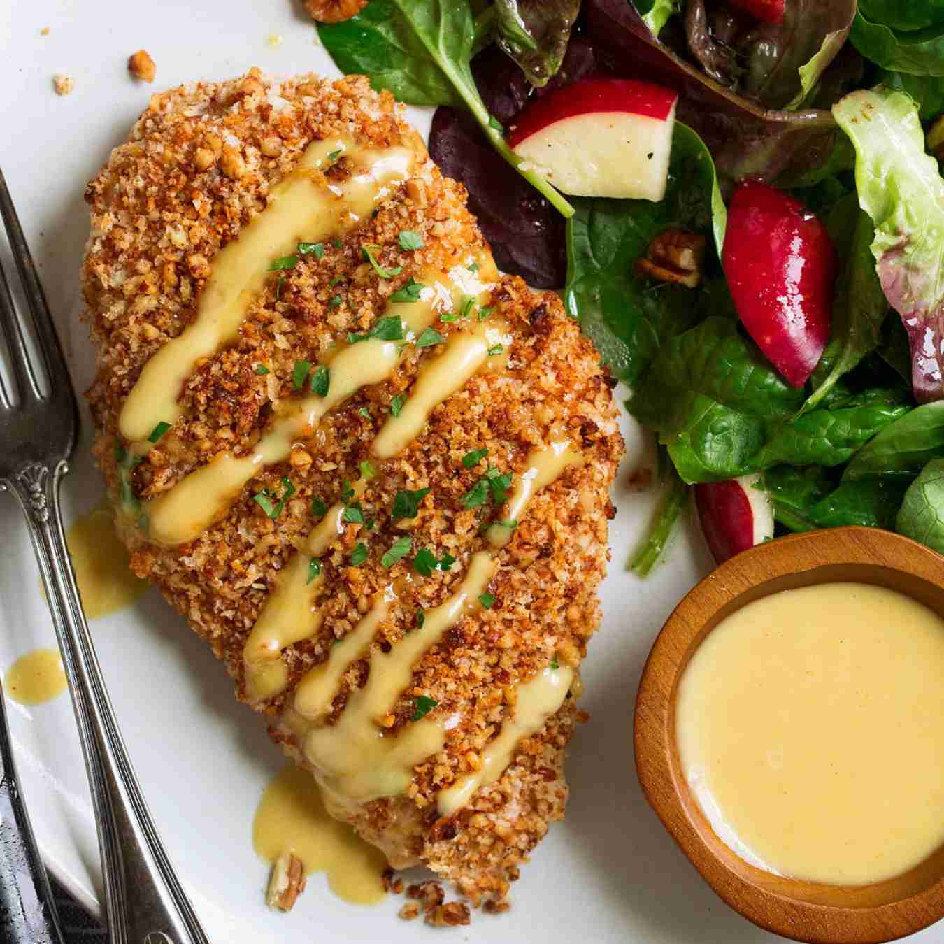 Ức gà chiên với quả hồ đào