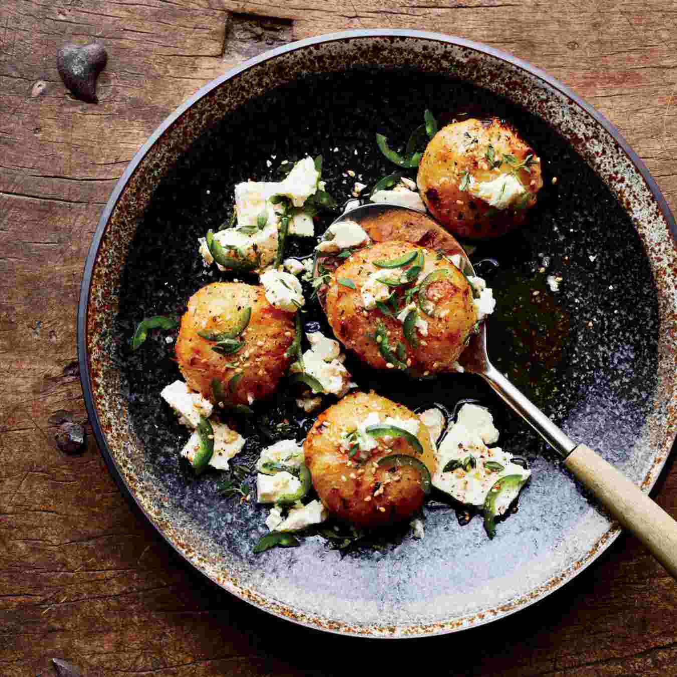 Đun nóng dầu trên chảo. Lăn đều từng viên su hào qua hỗn hợp phô mai Parmesan. Chiên các viên su hào cho đến khi chín có màu vàng nâu đẹp mắt. Xếp ra đĩa và thưởng thức nóng
