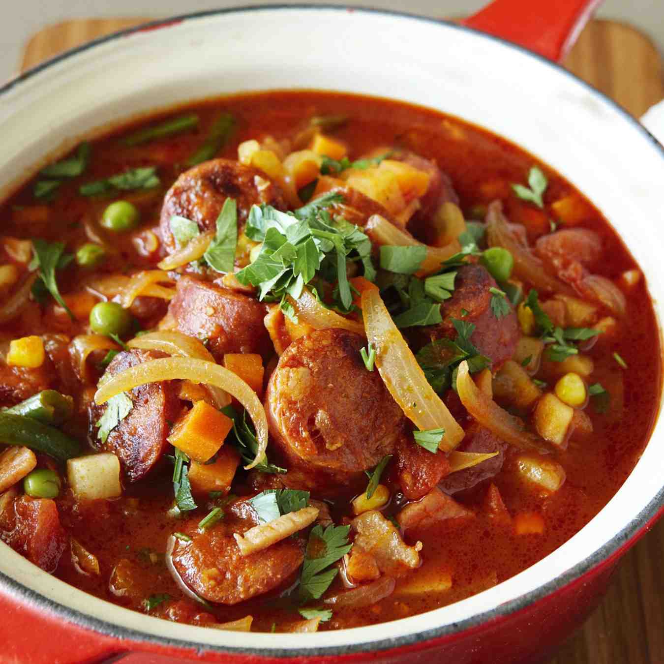 Xúc xích hầm với cà chua