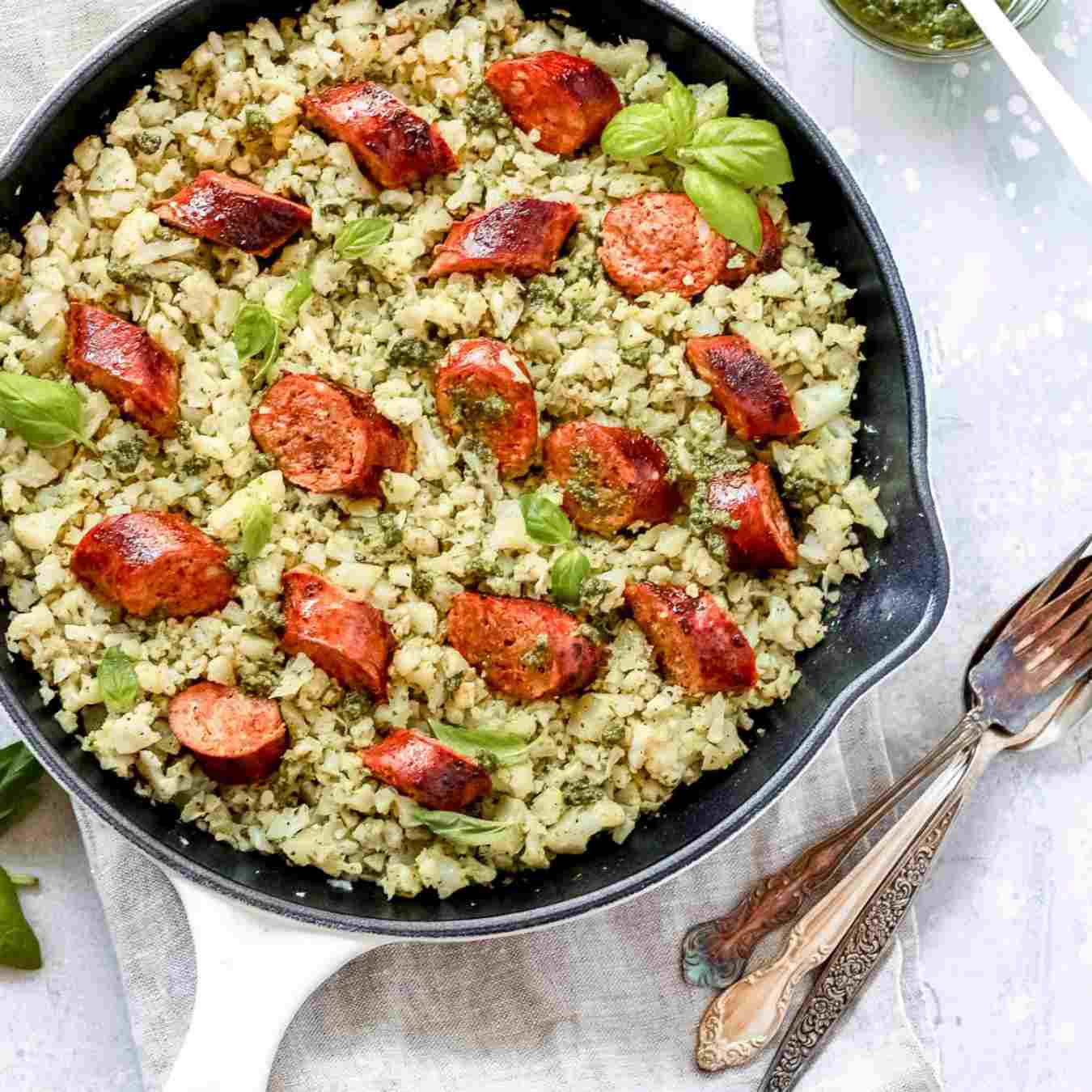 Cơm súp lơ với xúc xích